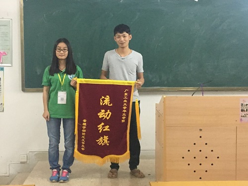 2017年5月15日19时,管理学部团总支学生会进行了每两周一次的流动红旗颁发,本次活动旨在激发同学们为班集体做贡献的热情,在早晚修出勤和平时课室卫生方面能够进一步严格要求自己,共同营造良好的生活和学习氛围。活动由生活部的两名干事主持,管理学部学生会生活部部长宋洁为获奖班级进行颁奖。