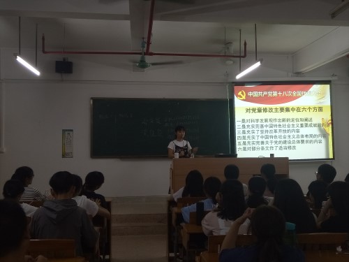 首先,授课人员给党章学员们讲解了迎接中共十九大召开的新要求以及“两学一做”等内容。通过授课人员详细的讲解,2017级党章学员不仅对现阶段党组织的建设发展等方面有了进一步的了解,还切身体会到党组织发展党员的规范性和严格性。