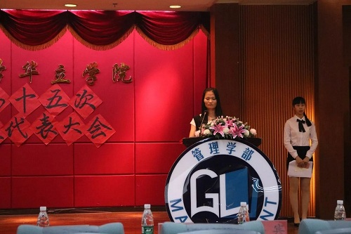 一年一度的学生代表大会于2017年9月29日晚7点在图书馆二号报告厅正式拉开帷幕。出席本次大会的嘉宾分别有管理学部部长李季霞,管理学部党总支书记胡德森,管理学部团总支书记赖嘉琪以及其他学部的领导。