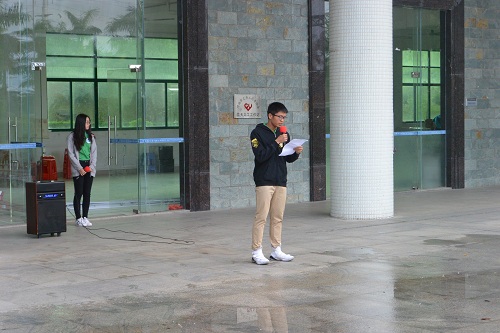 活动开始前,天就下起了蒙蒙细雨,但这并没有浇灭大家参加升旗仪式的热情,6:50分,各班已经在1号楼集合完毕,并且在纪检部工作人员的带领下有序进场。集会开始,鲜艳的五星红旗在庄重的国歌声中徐徐升起,台下同学投以庄严的注目礼。而后,由17工商2班的代表胡嘉民同学发言,胡嘉民同学着重强调了“文明精神,野蛮体魄”的重要性,并且分别举例了如何在学习、生活中培育文明精神,解释了野蛮体魄具体的含义以及日后该怎样去实现,最后以精彩的排比句结束了自己的演讲。