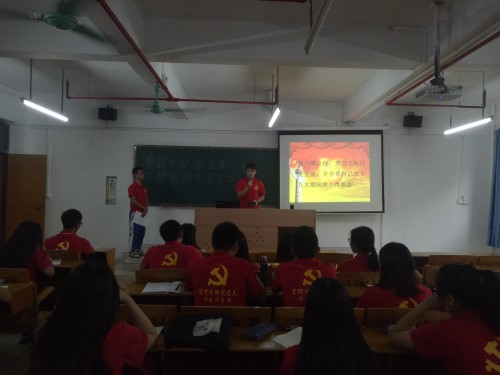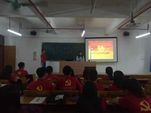 2017年10月26日下午,管理学部学生第二党支部在5号楼409教室召开组织生活会议。出席本次会议有党支部书记张雪玉、全体在校学生党员、党务秘书及干事。会议由党务秘书夏墩锐主持。