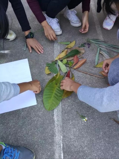 经过一轮刺激的游戏后,开始了体验自然环节,第一轮体验环节是利用自然界的凋谢物作画。在工作人员的细心解说后,同学们纷纷去寻找枯枝、落叶、落花作出了很多美妙的自然画,并且每队分别为画取了名字。第二个轮验环节是演自然情景剧,每支队伍都会有关于自然过程的关键词,然后根据关键词演自然情景剧。每支队伍都齐心协力,呈现出精彩的演出。