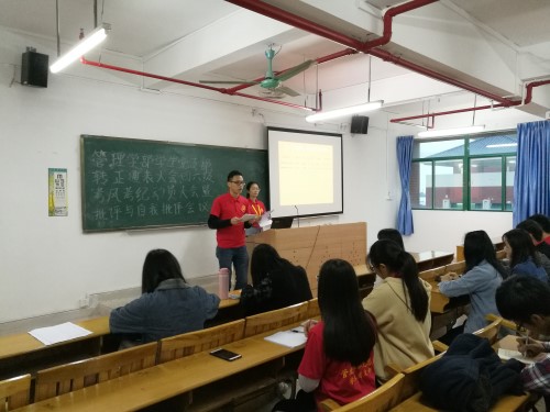 2017年12月14日 17时30分,管理学部党总支学生党支部于5号楼409教室召开支部预备党员转正暨四六级考风考纪动员以及批评与自我批评会议。参加本次会议的有支部书记张雪玉同志、学生党员、党务秘书及干事。会议由党务秘书王伊玲主持。全体起立,奏唱国歌。会议正式开始。