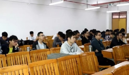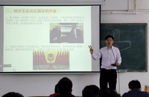 随后,胡德森书记以十九大会议的胜利召开作为引入点,讲述了召开十九大的各项内容以及十九大的重要作用。紧接着,他认为“政治生态决定国家的兴衰”,告诉同学们建国强国的重要性,否则“落后就要挨打”。随后,他还以多个小主题:“中国经济维持中高速增长”、“树立文化自信”、“科技强国”和“一带一路”来印证我国的实力越来越壮大,从而也更需要同学们树立正确的价值观,为投身于社会主义事业而努力。