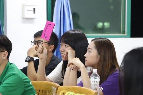 为了提高我校学生的心理健康水平,普及心理健康知识,增强大学生的心理健康素质,树立积极向上、乐观勇敢的人生态度。 2018年4月20日心理学协会在3号楼209课室举办了心理知识竞赛。本次活动出席的人员有:心理指导老师吴连宁,经济学部钟云珊老师,外语外贸学部温嘉慧老师,还有各学部两支参赛队伍,其中,代表管理学部参赛的队伍分别有来自17市营2班的“这个名字”队和16工商2班的“晕轮效应”队。