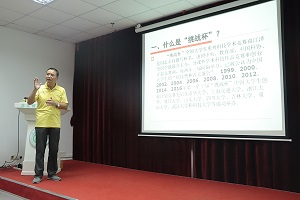 随后,黄兆明副教授为在座的同学们展示了一份完整、可行、具有创造性和市场前景的商业计划书,他表示参赛成功的关键的环节是需要制作一份切实可行的计划书,同时,他还说明了商业计划书要做到“创意新颖、构思独特、亮点突出”这三大关键。紧接着,他为同学们讲述了历年来挑战杯的参赛和获奖情况,提出了“以作品论英雄”这个观点,告诉同学们在这场比赛中,拥有优秀的作品才是至关重要的。最后,他还为同学们讲述了创业计划竞赛的由来以及目的,激励大家要积极参加比赛,争取为自己、为学部,为学院争光!