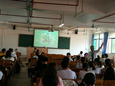 2018年6月1日,链家房地产经纪有限公司人力资源中心经理黄令涛在5号楼608多媒体课室举办实习生招聘宣讲会。