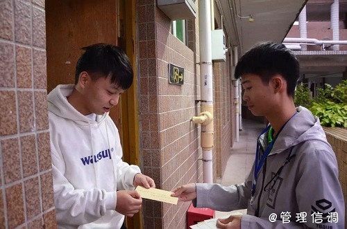 清脆的敲门声敲出了期待,当信使把信送到收信人的手中时,收信人脸上洋溢的是惊喜,流露的是难以掩盖的幸福。也许,这就是爱心送信的意义所在。爱心信使在充满幸福气氛的宿舍楼层里来回穿梭,把一封封书信递到收信人手中,也将一份份真心送到收信人手中。