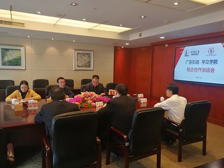 2018年12月27日下午,学院副院长王学军带队。校外教学管理处处长习宗德、管理学部部长李季霞和校外教学与就业副主任刘伟,走访了位于广州市中石化广东石油分公司总部,与石化公司人力资源处曹东明专家、赵艳军主管等进行校企合作洽谈会。