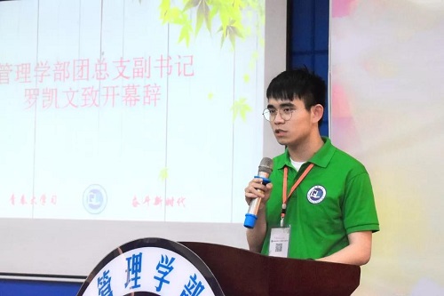 会议初始,管理学部团总支副书记罗凯文为本次会议作开幕词,他指出:志愿活动从来不伟大,却总能温暖人心。紧接着,他和我们一起回顾三下乡精彩瞬间、介绍了本次三下乡捐款情况和捐款使用情况以及对这次三下乡活动进行了总结。