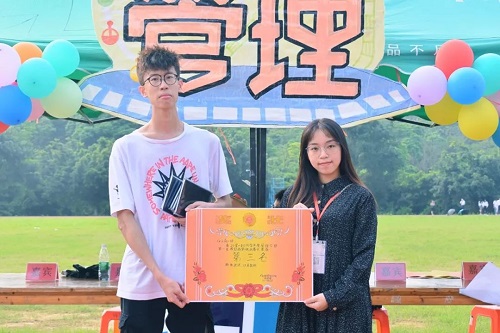 经过激烈角逐后,得到前三名的分别是18市营2班、18信管1班和18工商2班。学生会副主席陈帆、副主席吴玉全以及秘书长林雨贞分别为获奖队员颁发了印有我校校徽的精美奖品以及奖状。