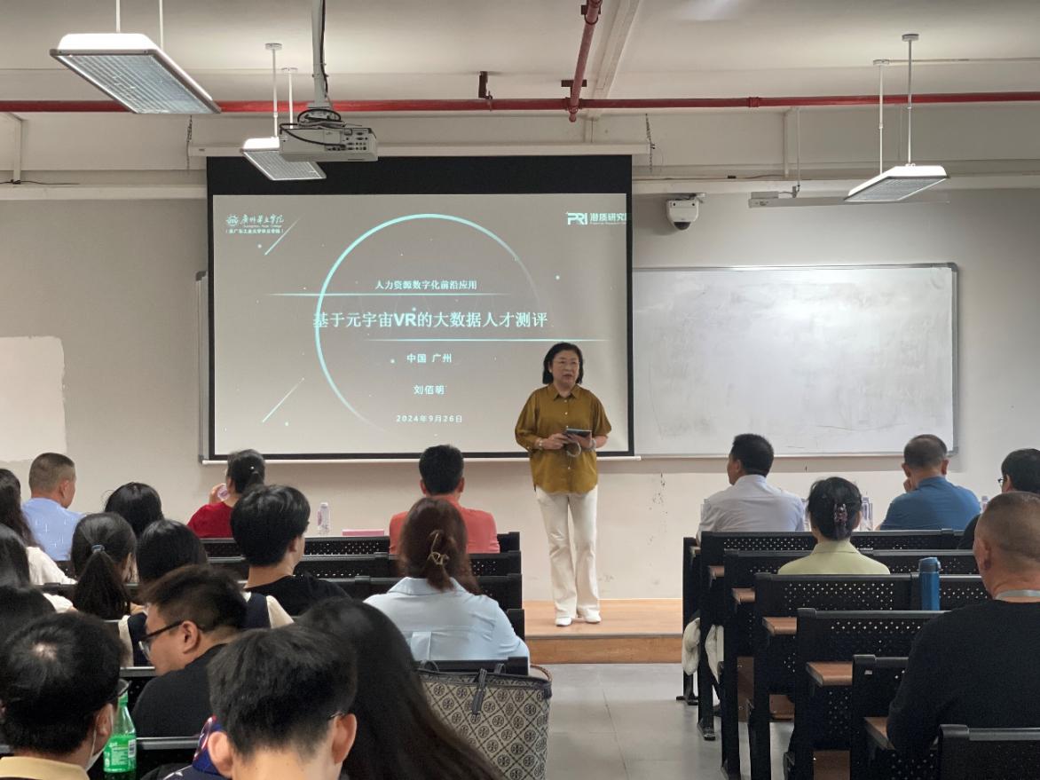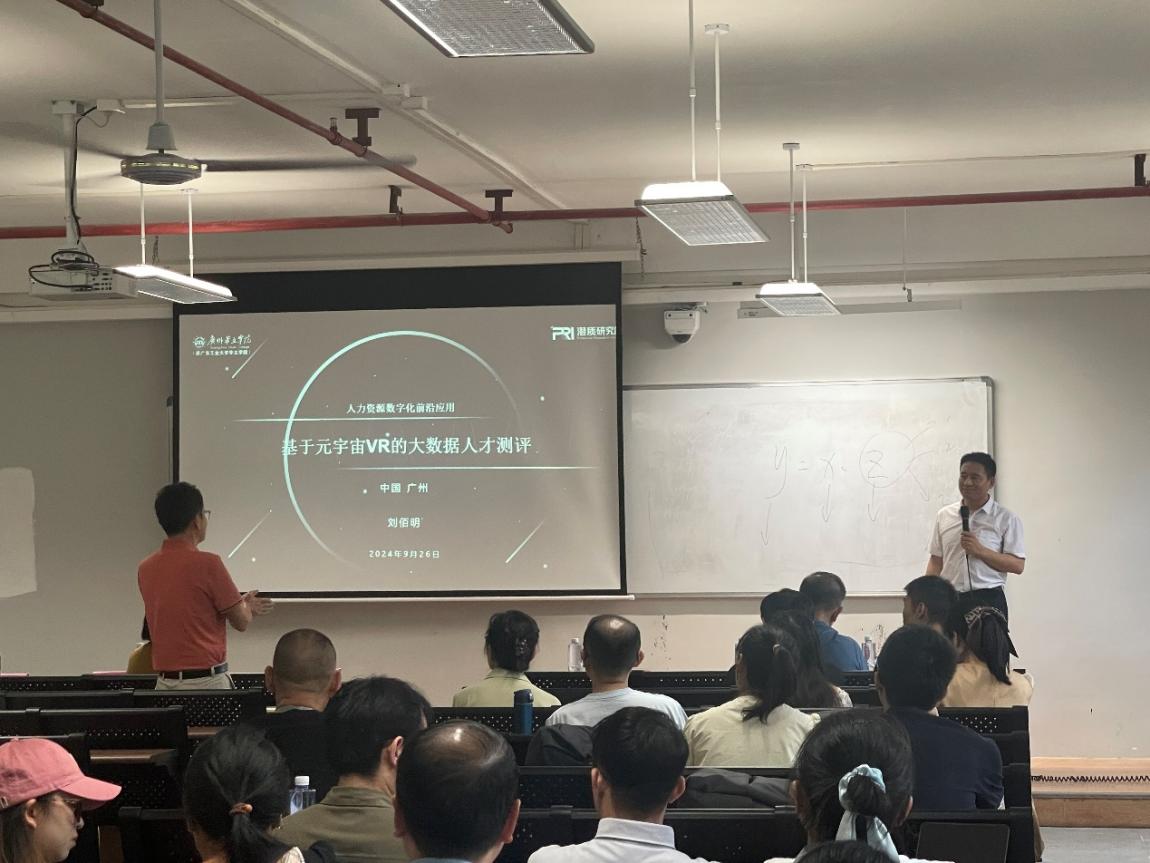 2024年9月26日下午,管理学院特邀北京潜质大数据科学研究院刘佰明院长开展了“人力资源数字化前沿应用——基于元宇宙VR的大数据人才测评”的专题讲座。管理学院院长邹辉霞教授担任主持人,我院全体教师和学生代表参会。