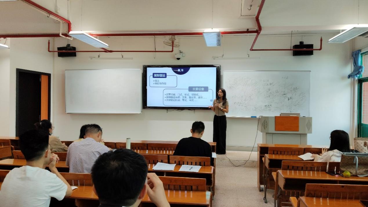 在曾老师讲授《现代物流学》相关内容之后,王晨老师立足实际案例,对其中装卸搬运的知识予以拓展延伸。王晨老师以集装箱港口为例,并结合相关视频,针对集装箱从集装箱船卸下,直至开始运输过程中所涉及的装卸搬运设备展开了详尽讲解。这一方式使得所学知识更为直观,有效吸引了学生的兴趣,也有利于学生的理解与记忆。通过对集装箱码头装卸搬运作业流程的分析,引出装卸搬运作业的原则和相关措施,加深学生对于装卸搬运工作的理解和运用。