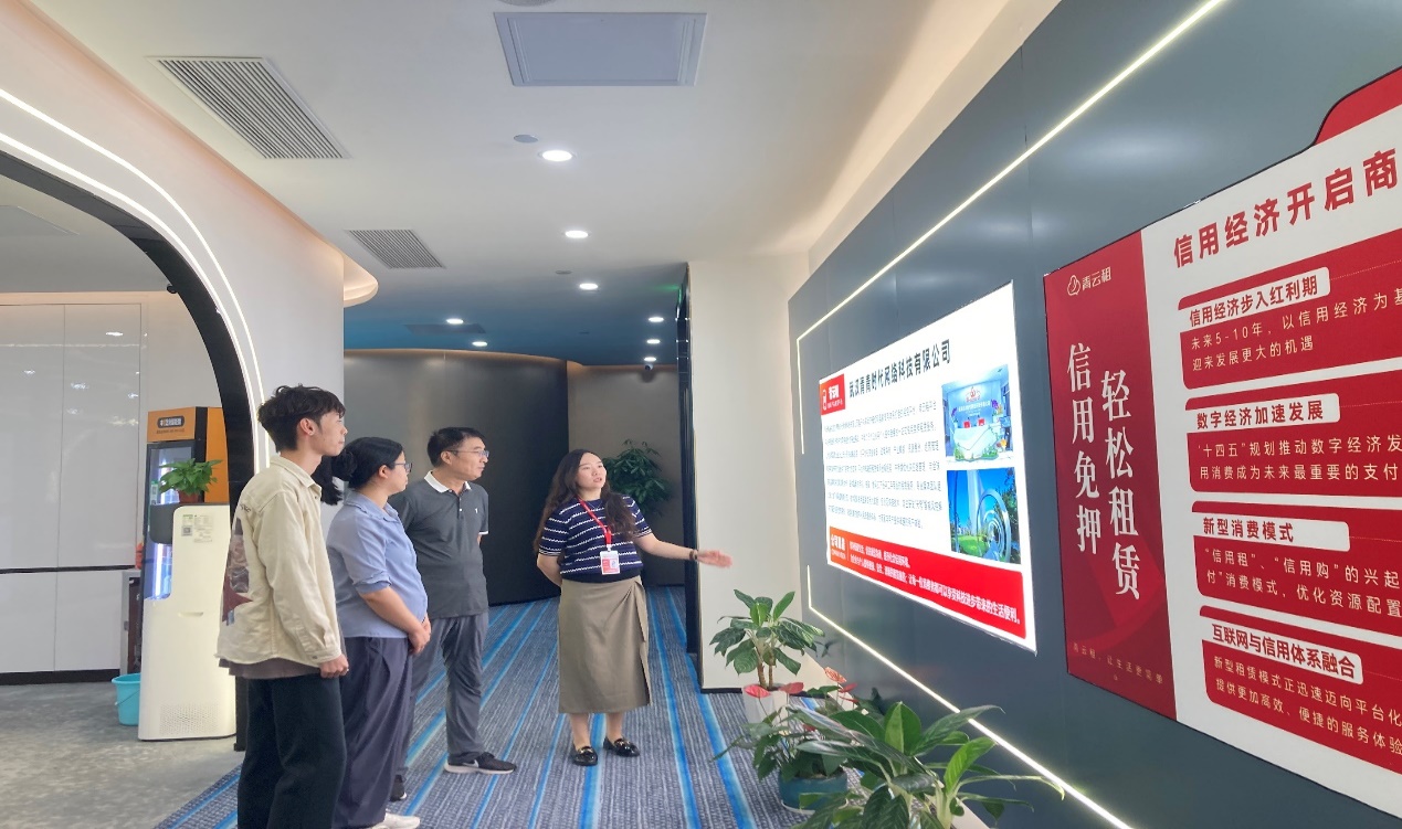 据悉,广州青云领航科技咨询有限公司是武汉青青时代网络科技有限公司旗下子公司,其母公司打造的 “青云租” 平台,在国内数码产品信用免押租赁领域占据领先地位。交流中,黎伊琪经理向学院教师详细解读了 “青云租” 的业务模式与发展现状。她介绍,该平台以共享经济为依托,深度融合国家信用体系,专注为企业及个人提供便捷、安全、透明的数码产品租赁服务。截至目前,平台已累计服务超100万用户,入驻注册商户达5万家,且用户与商户规模仍在持续稳步增长。