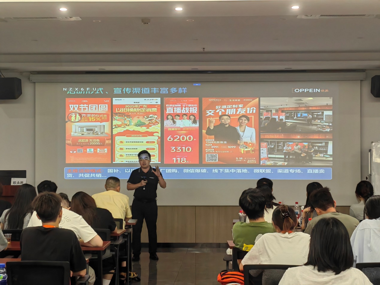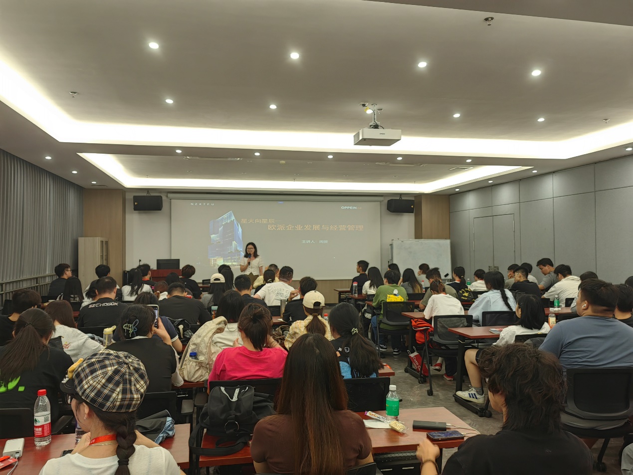 午后实习环节聚焦企业软实力与营销实战。欧派人力资源发展部周赟主任以 “企业成长与文化传承” 为主题,系统梳理欧派的发展历程、核心价值观与企业文化体系,帮助同学们全面理解这家家居行业领军企业的发展逻辑。紧接着,营销事业部欧永胜总监带来题为《欧派市场运营模式之道》的专题讲座,结合真实案例拆解企业在定制营销战略制定、数字化运营落地中的关键经验。同学们积极提问,与企业专家进行了深入交流。