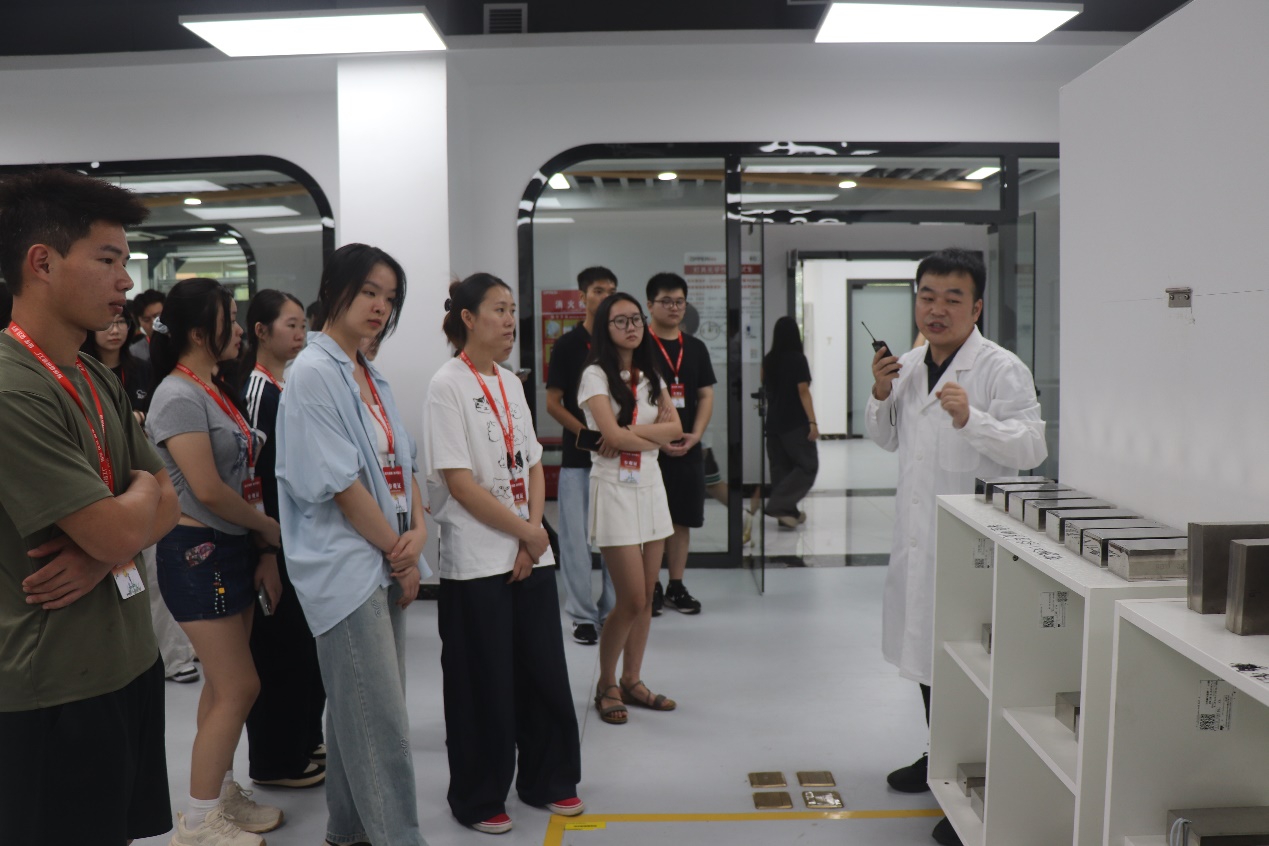 随后,在欧派工作人员的引导下,同学们依次参观了欧派产业基地沙盘、AI全自动柔性生产工厂、生产实时数字看板以及智能物流仓。从沙盘呈现的产业布局,到生产线中机械臂的精准作业,再到数字看板上动态更新的生产数据,直观展现了欧派在智能制造与数字化转型领域的行业领先实力,让同学们对现代工业生产的高效性与智能化水平建立了具象认知。随后,师生一行前往国家级实验中心参访,实验中心袁主任亲自接待,详细讲解各测试空间的功能定位与操作流程,同学们近距离接触前沿检测设备,观摩核心技术流程,深刻感受到欧派在产品研发与质量管控环节的严谨匠心。