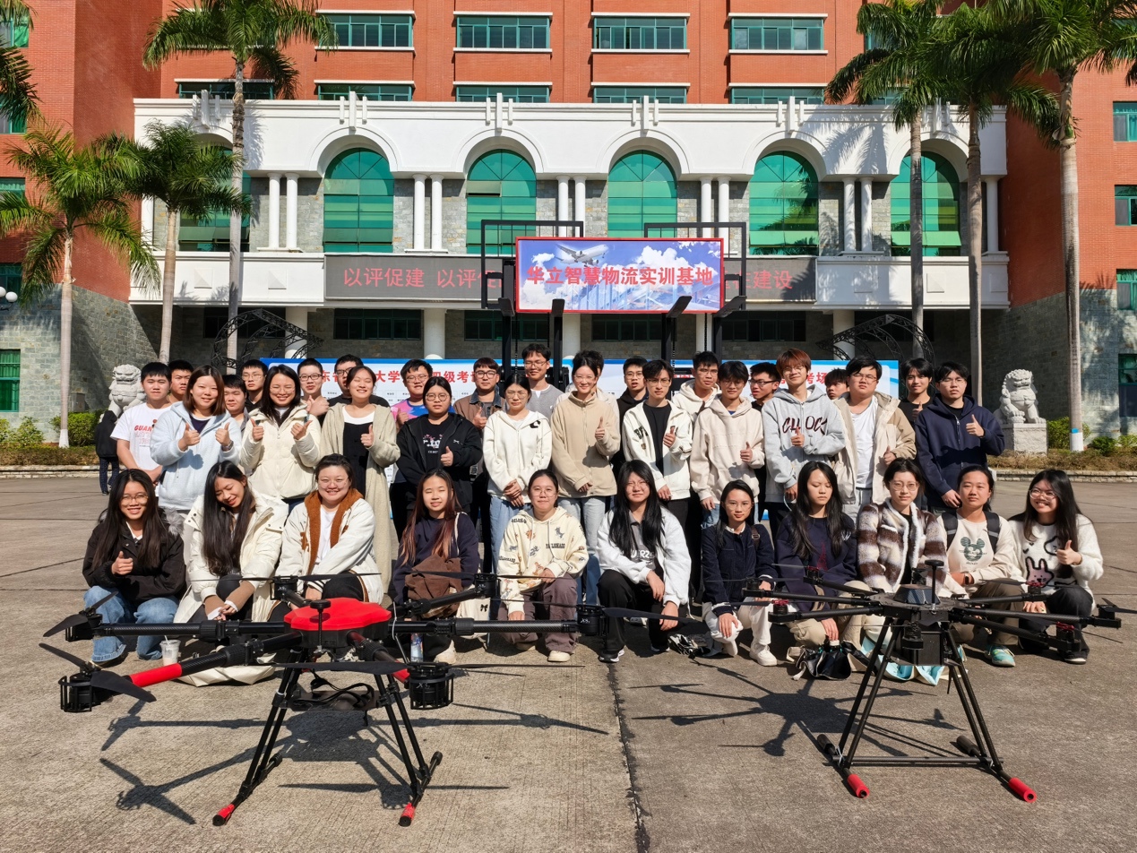 张德龙教授详细介绍了实训基地的建设情况与功能布局。基地不仅涵盖传统物流设备如叉车操作区,还引入了无人机配送模拟系统,体现了物流技术的现代化与前沿性。随后,23级物流管理1班的同学们作为首批体验者,在专业教练的指导下进行了无人机操作实训。学生们热情高涨,在安全有序的环境中逐步掌握飞行技巧,体验科技赋能物流的实践魅力。