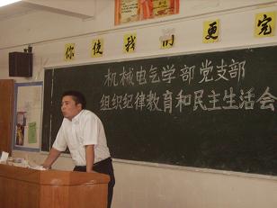 机械电气学部党支部于2008年5月20日举行了组织纪律教育学习和民主生活大会,此次会议特别邀请了其他党外人士参加。