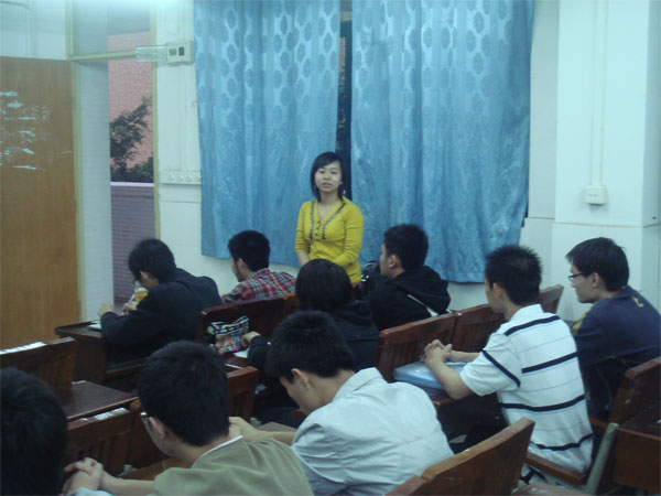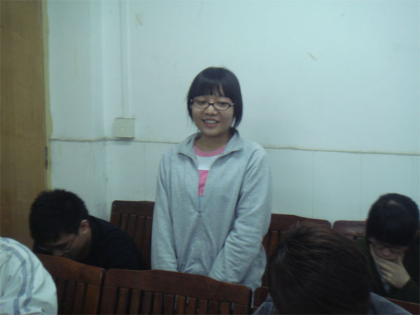 预备党员刘秀文同学对近期的工作进行汇报和总结