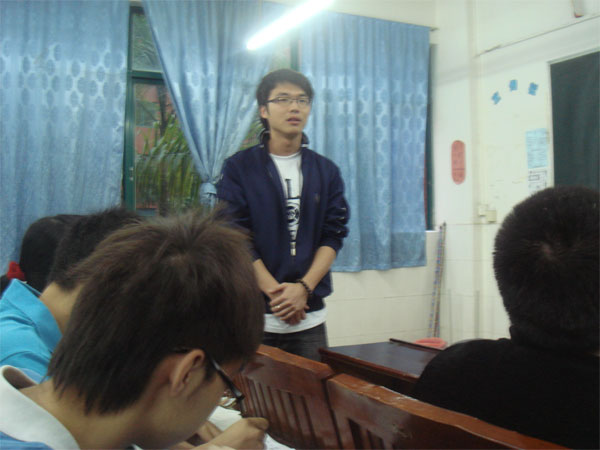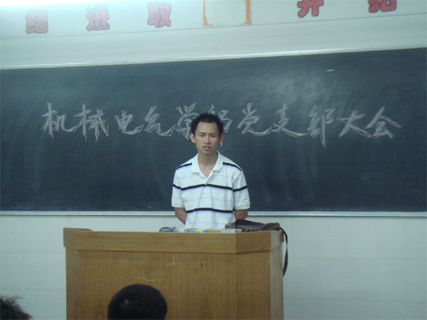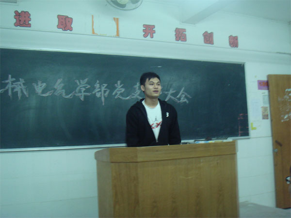 预备党员陈锦斌同学对近期的工作进行汇报和总结