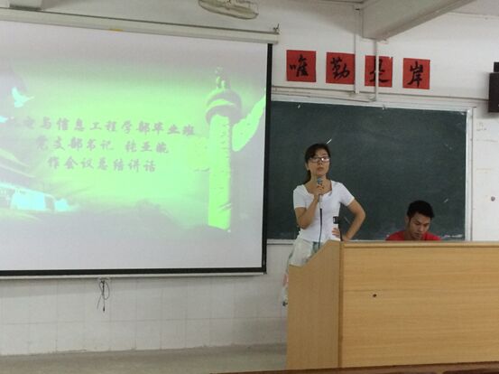 2015年6月13日晚上6点30分,机电学部党总支在第一教学楼404课室召开毕业班学生党支部预备党员转正大会。毕业班学生党支部书记张亚婉老师出席了本次会议。