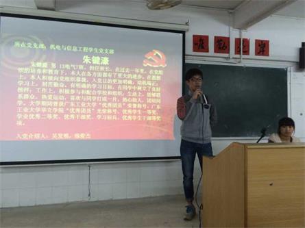 2015年12月15日下午7点机电学部党总支在1号楼多媒体404课室隆重召开了通表暨转正会议,到场的嘉宾有机电学部党总支书记郭堪通,另外参加本次会议的还有主持人魏海媚,38位在校学生党员和35位入党积极分子。