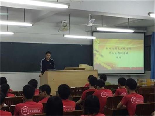 会议开始,首先由机电学部党总支书记唐巍书记进行重要讲话。他对学生党员们做出了如下几点要求:1、“两学一做”学习教育要做好,努力做好一名合格党员。2、党支部纪律一定要做好,任何会议不得无故请假或早退,违者写检讨书,情况严重者将受党内处分。3、不得违反校内规章制度。4、党员尽量不能挂科,要保持优良成绩。5、凡是涉及到本学部的活动,党员要起带头作用,积极参加。6、热心帮助他人,积极配合辅导员和学生干部的工作。7、为人处事要做好,遇见老师、书记应主动问好,进办公室前应礼貌敲门。