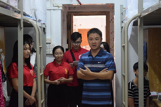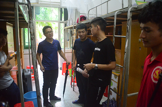 在新生党员宿舍内,老师们见到了报到完在宿舍休息的新生们,老师们很是关心新生们各个方面的情况,认真的回答新生们来到学校后所遇到的问题,并提出建议帮助新生们解决问题,叮嘱新生们再接下来的几天中需要注意的事项,保管好个人财产,有什么需要可以找党员师兄师姐帮忙,但有重大事情仍需找老师咨询。