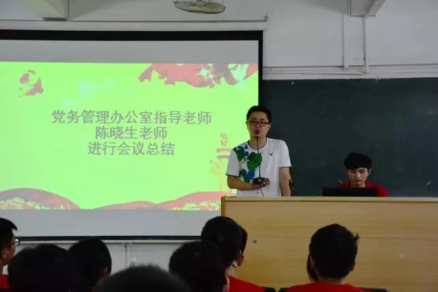 出席本次会议的有机电党务管理办公室指导老师陈晓生,全体学生党员和党务秘书参加本次会议,并由党务秘书姚镔担任主持人。