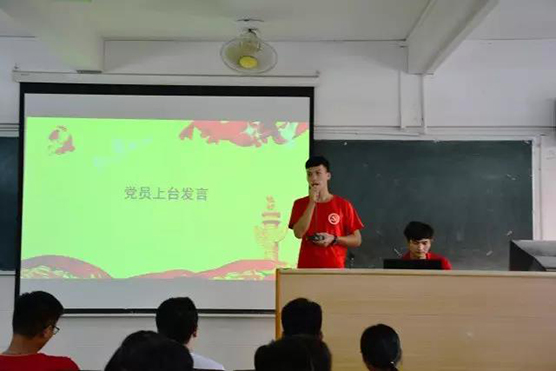 首先,全体人员起身肃立,面向国旗,高唱国歌,将对党对国家的敬意与爱戴,融入与嘹亮的歌声中,拉开会议的序幕。接着,党员同志上台发言,围绕着“以老带新”下宿舍,党章学习活动等阐述自己的所感所悟,对自己的表现进行自我总结;而新生党员则从一名新生的角度,阐述了本次党章学习活动自身的感悟,提出自己独特的看法和意见。