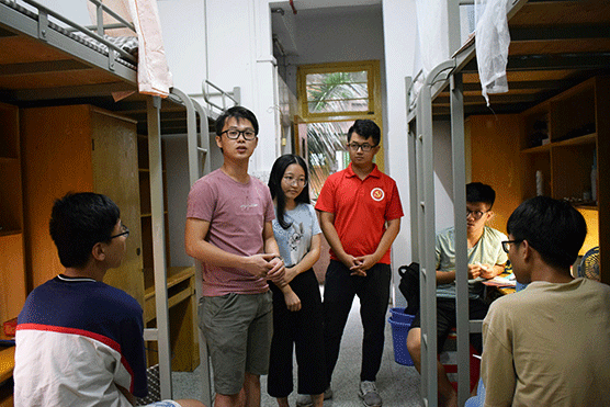 为了更好地迎接新生们的到来,了解新生的入住情况,帮助新生快速适应校园生活,2018年8月27日,机电与信息工程学部党总支书记唐巍,党务管理办公室指导老师陈智鹏,18级辅导员林凯鑫,罗文雯,张涵以及党务秘书走访了新生党员宿舍。