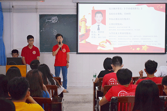 2019年6月15日晚,机电与信息工程学部党总支于1号教学楼405召开了2019年上半年接收预备党员转正大会,出席会议的嘉宾有机电工程学院党总支副书记唐巍、计算机与信息工程学部学管副主任谢太义、计算机与信息工程学部学生党支部书记陈智鹏、机电工程学院党务管理办公室指导老师王琼、机电与信息工程学部学生党支部组织委员钟嘉伦及学生党支部21名正式党员、预备党员13名和党务秘书。