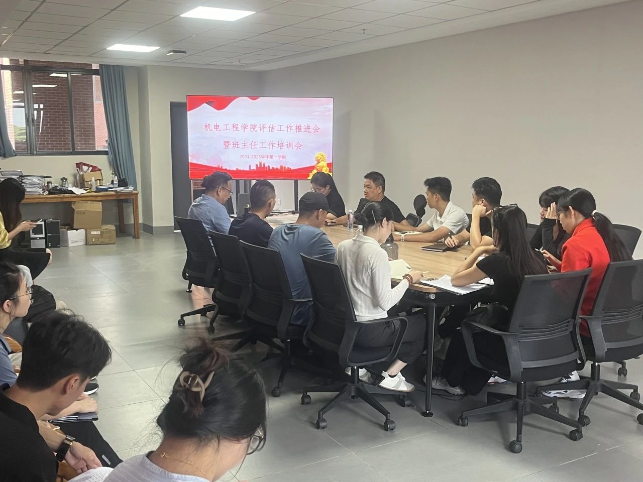会议最后一项,进行机电工程学院评估工作推进会暨班主任工作培训会。