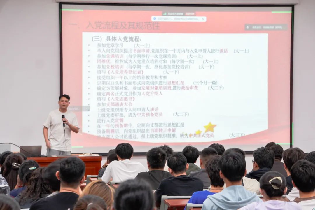 为深入贯彻落实习近平新时代中国特色社会主义思想,进一步提高入党申请人的政治修养,落实党员发展的教育工作。2024年11月7日,机电工程学院联合江门校区党支部于江门校区图书馆二号报告厅开展了第七期党课第三讲学习教育。参加本期党课的有机电工程学院党务管理办公室指导老师陈俊学、学生党员林文超、第七期党课学员及党务秘书。