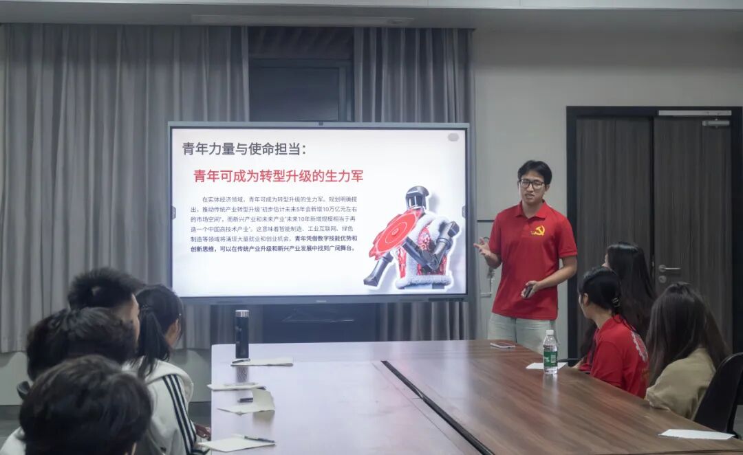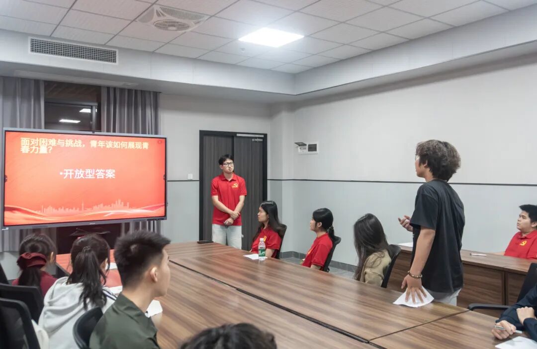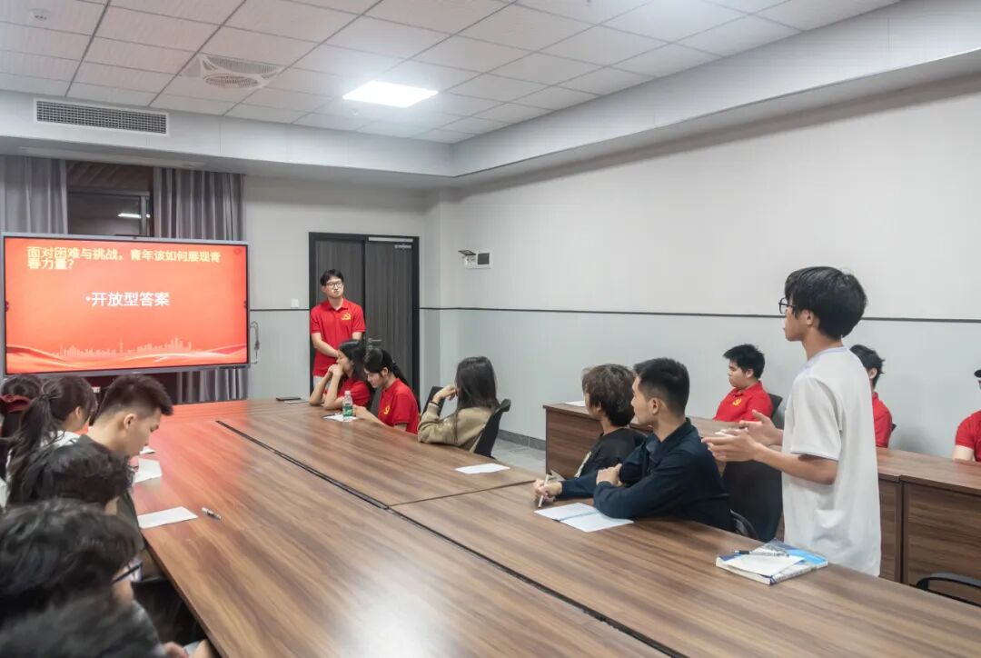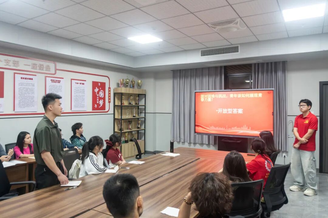 在提问交流环节,现场氛围热烈而深刻。党员同志以 “当代青年的担当,与老一辈有什么不同?”“面对困难与挑战,青年该如何展现青春力量?” 两大核心问题为引,带领学员们展开深度思考与热烈研讨。老一辈的担当,是在艰难中守土立业、无私奉献;当代青年的担当,是在盛世中创新图强、专业报国。时代变了、路径变了,但爱国底色、责任初心、奋斗精神从未改变。学员们结合自身学习与成长经历,各抒己见、畅所欲言,在思想碰撞中深化了对青年使命的理解,更明晰了新时代青年的责任与方向,真正做到学思践悟、知行合一。