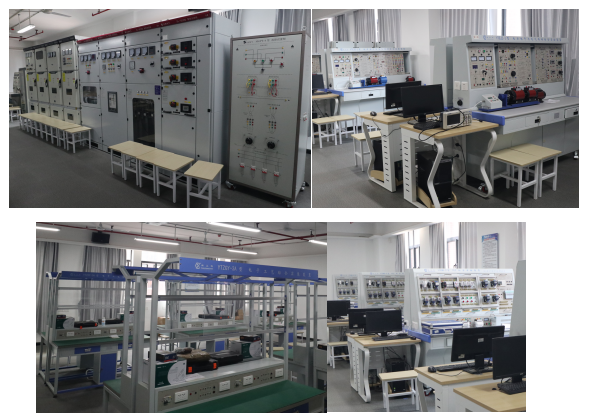 电气、自动化实验室:主要涵盖电工电子技术实验室是电学相关的专业基础实验室之一,拥有《电子技术实验室》、《电工实验室》、《电子工艺实验室》、《高低压供配电实验室》、《电力电子与电气传动实验室》、《PLC可编程控制器实验室》、《电工技能实训实验室》实验室。主要承担电气、自动化、信息、计算机、机器人、机械等专业的《电工与电子技术》《电路理论》《电工工艺实训》《数字电子技术实验》《模拟电子技术实验》《电力电子技术实验》《电机与电力拖动实验》《电力系统自动装置实训》《可编程控制器实验》等课程的实验教学及相关课程设计等教学任务。实验教学采用多种方案进行,包含验证型、综合型、设计性、创新新实验等,以促进教学改的发展和教育质量的提高,培养学生分析、设计、组成和调试电路的基本能力。实验室在完成正常教学任务外,还开放相关实验室,开展多种第二课堂活动,并为大学生电子设计竞赛、挑战杯等提供相关支持。