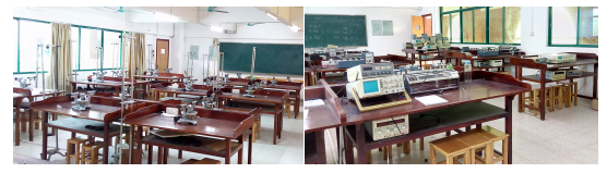 物理实验室:主要涵盖力学实验室、光学实验室、电学实验室,其功能可满足自动化专业、电气工程及自动化专业、机械专业、材料专业、信息工程专业、建筑学专业、土木工程专业等理工科相关专业及的力学、光学、电磁学相关课程实验的要求。主要开设的实验有《长度和密度的测量实验》《用拉伸法测量金属丝的杨氏弹性模量实验》《用三线摆测量刚体的转动惯量实验》《用霍尔元件测量磁感强度实验》《等厚干涉现象-牛顿环实验》《迈克尔逊干涉仪实验》《分光计的调整与三棱镜顶角的测量实验》《用分光计测量三棱镜的折射率实验》《电流场模拟静电场实验》《示波器的使用实验》《声速测量实验》《伏安法测电阻实验》《电表的改装与校准实验》《单臂电桥测电阻实验》等。