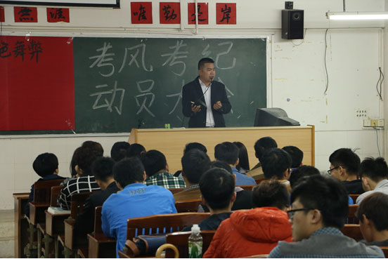 1月5日,机电与信息工程学部考风考纪动员大会在第一教学楼404课室举行,学部党总支书记郭堪通以及各年级辅导员、各班班长以及团支书参加本次会议。