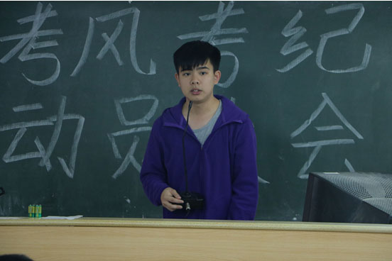 随后,学部学生会主席向全院学生发出倡议:“提高自身道德修养、严格遵守考试纪律、努力学习,刻苦钻研、文明考风、诚信考试”。同时郑重承诺,以饱满的热情和高度的责任感参加监考工作,服从学校考试安排,遵守考试工作管理规定。