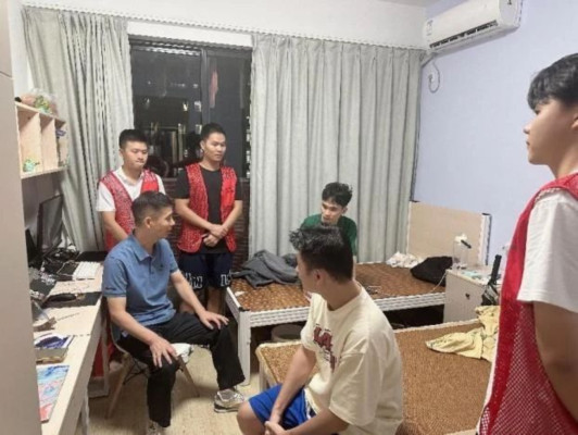 8月25日晚上,为进一步关心新生,机电工程学院院长何益宏、党总支副书记曾宏锦,亲自带队走访宿舍,携同辅导员郭浩良、谌鑫、陈蓬鑫一同来到了公寓,开展全覆盖走访和组建班群工作,为同学们答疑解惑,传递温暖。