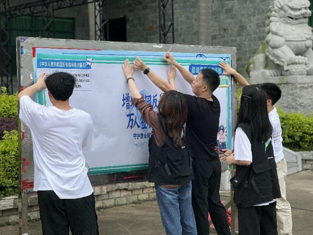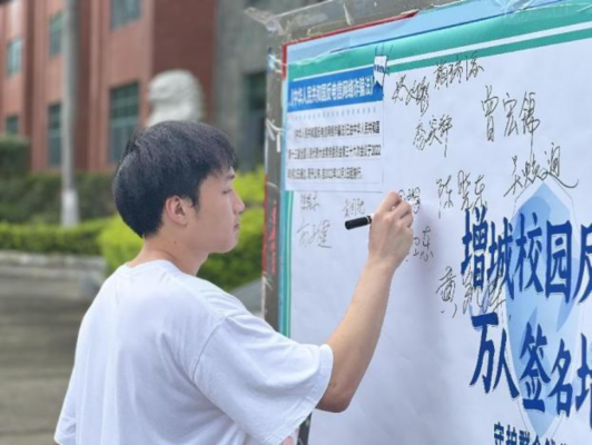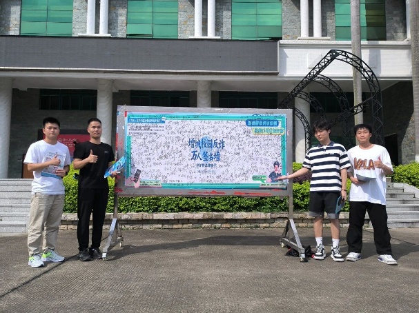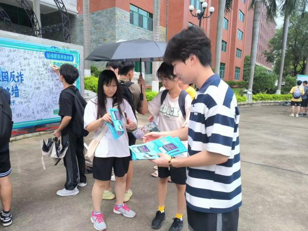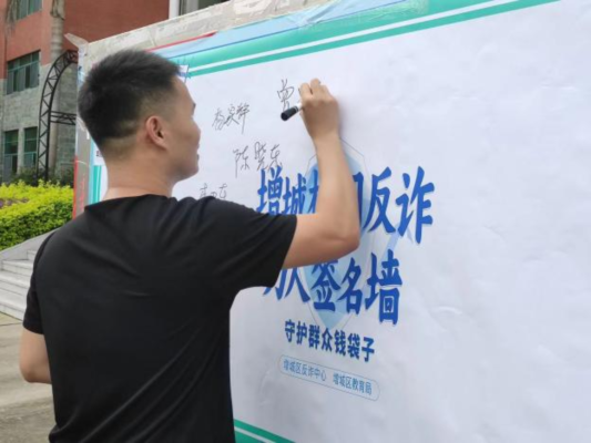我院学工办主任、辅导员以及学生干部,联合增江派出所通力合作,老师和学生干部一同在万人签名墙活动现场派发反诈宣传单给机电学生,并在派发过程中积极与学生进行反诈骗宣传互动,活动现场呈现出一片和谐友好的氛围。