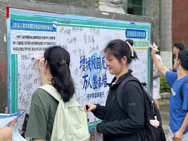 为进一步做好“全民反诈”宣防工作,大力营造校园反诈浓厚氛围,切实提升师生防骗识骗能力和遵法守法意识,坚决遏制师生从事买卖、出租、出借“电话卡银行卡”违法犯罪行为,全力减少校园电诈案件发生和最大限度避免师生财产损失,学校决定开展“校园反诈——万人签名活动”。
