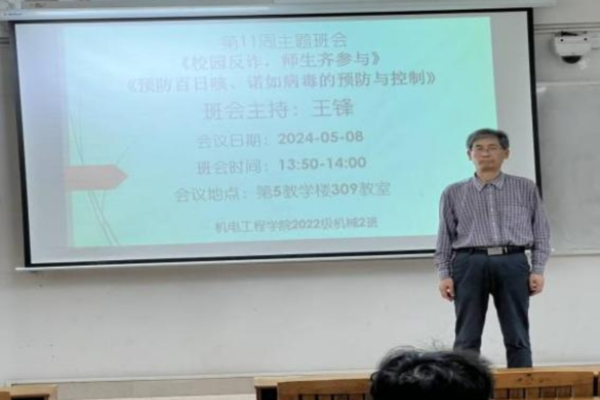 班会中,班主任和辅导员向学生普及了什么是电信诈骗,以及电信诈骗的类型有哪些,例如购物交易诈骗、冒充客服诈骗、兼职刷单诈骗、游戏交友诈骗等等,还向学生强调了防范诈骗的手段,例如禁止出借银行卡,注意接听反诈劝阻电话96110等等。