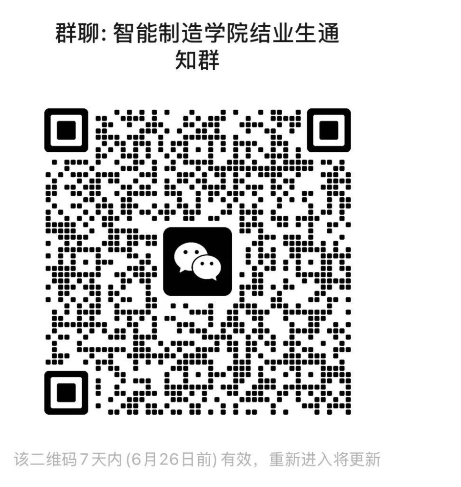 1、未能按时毕业的同学请加入qq群:344250645(智能制造学院结业群)和微信群(智能制造学院结业生通知群),主要发布有关重修和毕业资格申请等通知。
