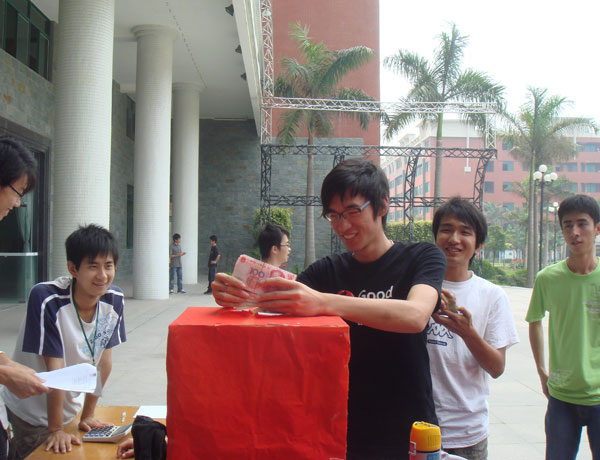 电气系全体党员和团总支学生会成员为灾区献爱心 作者:电气工程系 发布时间:2008-05-19 00:00:00 浏览次数: 次 【字体:小 大】 8.0 级的四川汶川大地震,震动了整个中国,也震动了整个中国13亿人民的心。 由院团委学生会发起,为四川灾区人民捐款的活动受到我校广大师生的热情响应,早前,李玉林书记以及全体辅导员不但踊跃捐款,还组织了我系全体党员、团总支学生会成员及广大学生进行募捐。 大家都怀着一颗感恩的心,向四川受灾人民伸出援手,传递祝福,传递温暖。 分享到: 【打印正文】