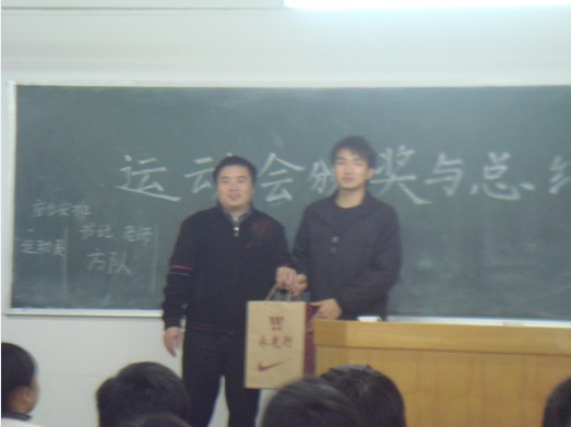 ![]() 李玉林书记为运动会取得优异成绩的梁建辉同学颁奖