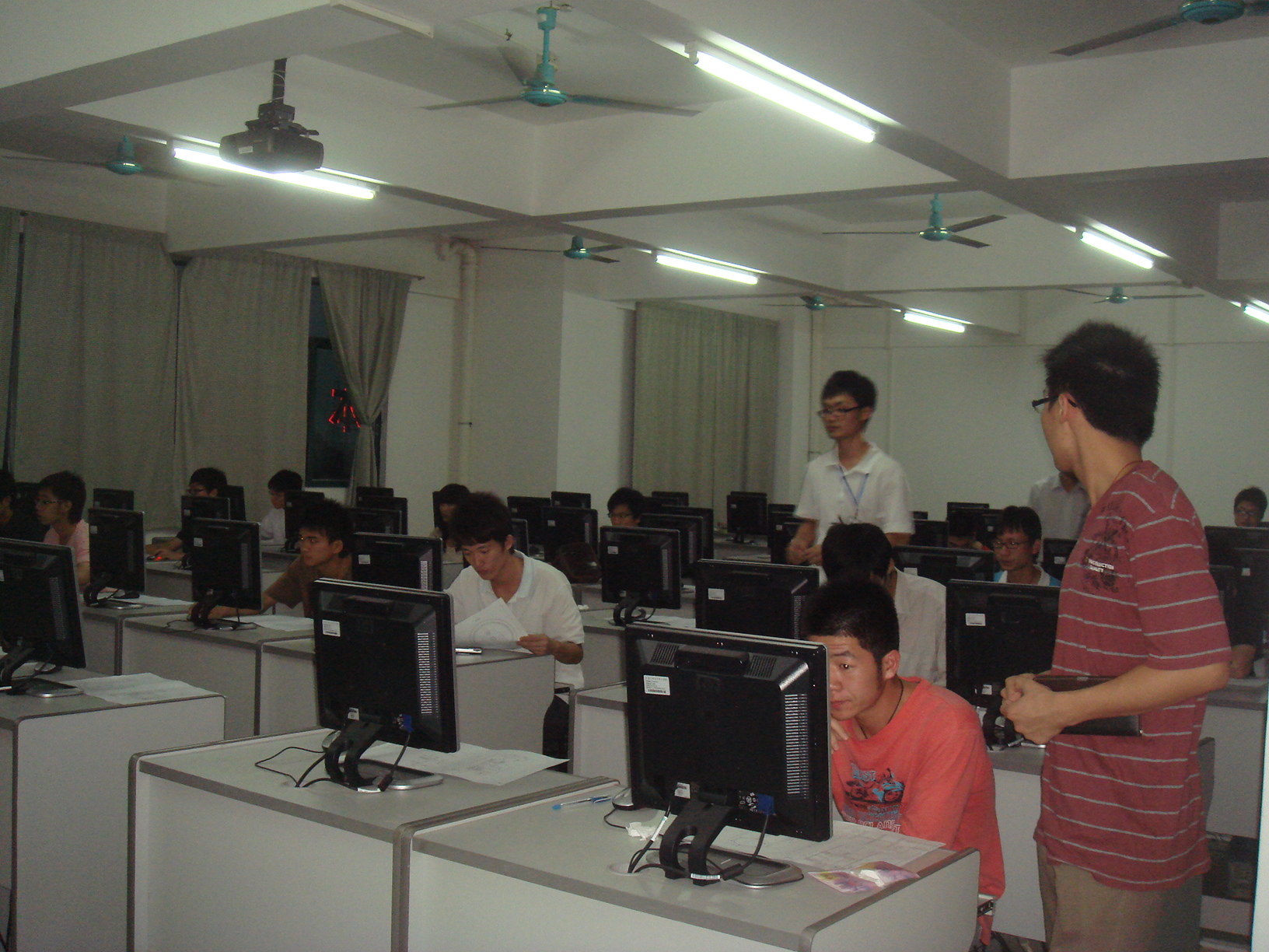 在第二个比赛室,学生在认真地看着题目做题