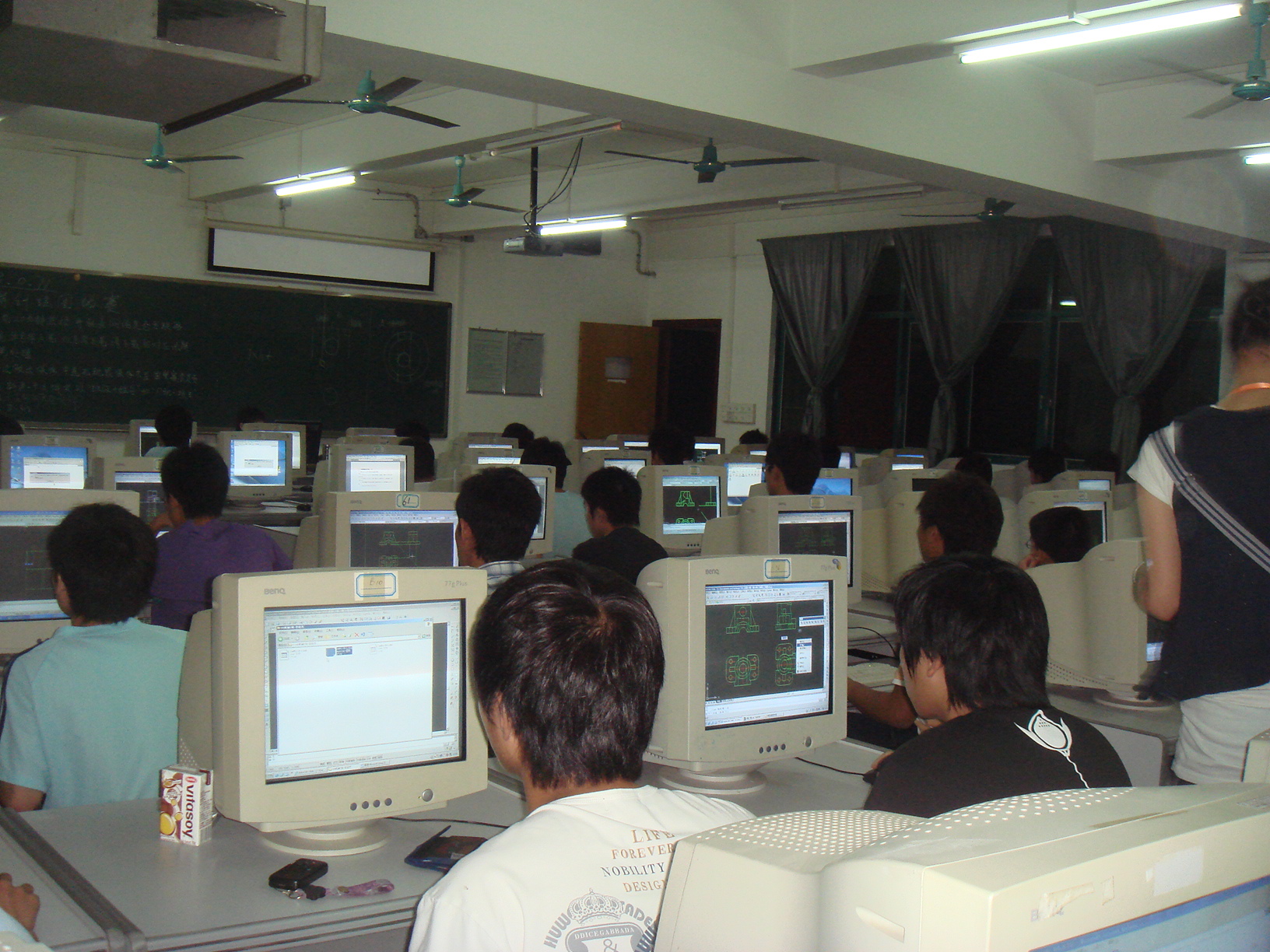 在第一个比赛室内,学生认真地绘图