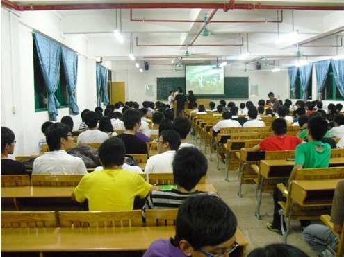 09年10月13日晚,广东工业大学华立学院机电学部第五届团支书学生会第一次全体大会在1号教学楼的教室隆重召开。当晚,机电学部余文华书记,团总支书记郭堪通老师与学生会主席团成员,各部门部长,干事出席了大会。6点45分,各干事纷纷怀着好奇与兴奋的心情有序的进入会场,场面十分热烈。随着一首首动听的背景音乐与屏幕上播放的历年机电学生会举行的各种活动纪念照片,各位干事陆续进入会场就坐并被那些富有意义的照片所吸引而认真观看着。