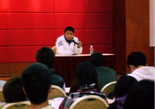 整场讲座最吸引同学们的便是三位师兄介绍自己学习经验这个环节。首先由来自管理学部07人力资源管理2班的陈沧海师兄发言,他说到知识比什么都重要,如何学习好英语,还有如何抓住机遇。英语就是要多读,多听,多做练习。要锻炼好自己的能力,因为成功就是能力加机遇,即使是遇上了机遇,但自身没有能力,这也是很难成功的。接着就是提问的环节,这个环节上同学们都踊跃提问,师兄细心回答问题。再接着由几个班的同学发表新生感言,上台演讲的同学们分别表达出心中对学习的一些关于学习的看法和听了师兄演讲后的一些感受。最后陈师兄预祝会场所有同学期末考取得优异成绩。